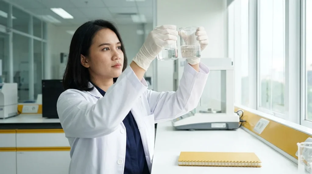 Penggunaan metanol atau alkohol teknis dilarang keras karena tingkat toksisitasnya. Validasi keamanan bahan baku harus selalu dibuktikan melalui dokumen teknis dari pemasok.